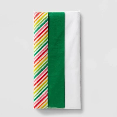 Present your gift beautifully with this 150-Count Banded Solid Gift Tissue Paper from Wondershop™. This pack of banded tissue paper includes 150 sheets in solid green and white colors as well as a diagonal rainbow-striped pattern for plenty of versatile and fun choices. Perfect for holiday gifting or any other occasion, you can place them as fillers inside gift boxes, packages, baskets or gift bags to provide a special finish.