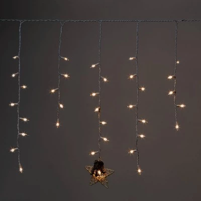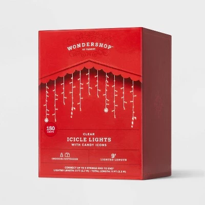 Create a festive glow in your home with the 150-Count Incandescent Icicle Lights with Novelty Accent Clear with White Wire from Wondershop™. These icicle lights are designed with 150 incandescent bulbs dangling down and adorned with a novelty accent for a beautiful look when decorated along roof awnings, peaks, windows or any other space. The clear lights help create a glowing space with their non-blinking effect and light up with one setting.
