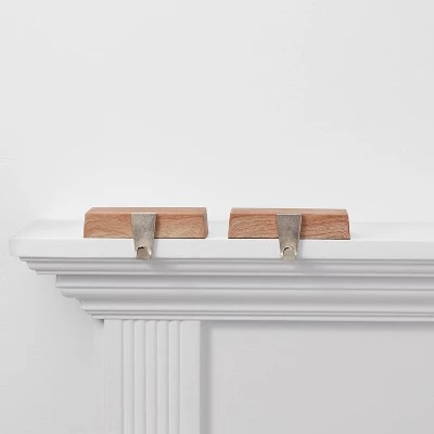 These Faux Wood Base Christmas Stocking Holders from Wondershop™ ensure Santa has a place to put all his little goodies on Christmas Eve when he makes his list and checks it twice. These stocking holders feature weighted, faux wooden rectangular bases that make for easy placement on any shelf or mantel while eliminating the need for hammering nails. With one silver metal hook on each for hanging a stocking for any family member, this set of two stocking holders can handle up to two pounds of goodies each for all the little gifts Santa gives the night before Christmas.