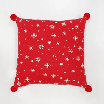 Wish Merry Christmas to all in your own style with the “Merry Christmas” Print Square Throw Pillow from Wondershop™. This square throw pillow features the message “Merry Christmas” on the ivory backdrop of one side, while the reverse features a snowflake print on the red backdrop to help you change the look. It is made with a 100% cotton exterior to give you a soft and comfy surface to lean back and relax. Adorned with pom-poms along the four corners, the Christmas throw pillow makes a beautiful decorative accent on your sofa, armchair or any other resting spot during the holiday season.