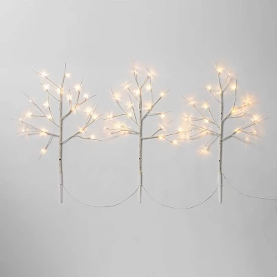 For a dramatic yet natural-looking display, line your sidewalk or pathway with the 3-Count LED Artificial Birch Twig Stake Lights from Wondershop™. These beautiful stake lights look like birch twigs in a white hue and light up with a warm white glow from the long-lasting LED bulbs. Each stake is 30 inches tall, so the lights will stand out in your yard and keep the path illuminated for easy navigation after dark. Use more than one set of these stake lights to create your own winter wonderland.