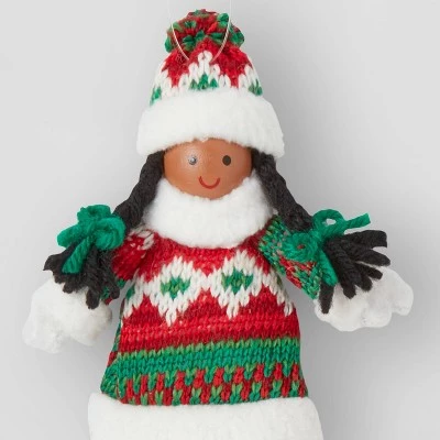 Each one of these 4-Count Fabric Girl with Knit Shoes Christmas Tree Ornaments from Wondershop™ is dressed in their holiday best. Made from polyester and wood, the set includes four pretty misses — one each in blue, red, pink and green knit dresses and shoes — with different hairstyles, skin tones, and sweet smiles. Intended for indoor decorative use only, the ornaments come with a top loop for easy hanging from the branches of your tree.