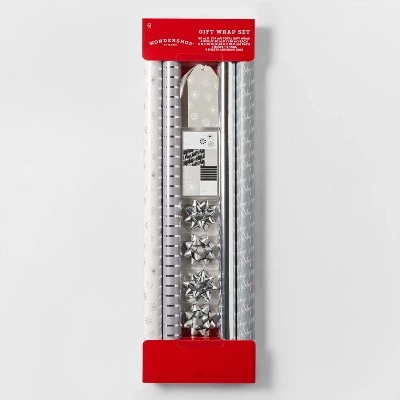 From holidays to celebrations and beyond, the 80-Square-Foot Gift Wrap Pack from Wondershop™ makes the perfect pick to wrap your gifts. This gift wrap pack includes gift wraps, tags, adhesive tags and bows, all in bright colors for a festive look. The wraps come in both solid colors and printed patterns that range from the phrase “Happy Holidays” to stripes and more to give you a variety of options for packing. Made with paper, this silver and white color gift wrap pack is perfect for a variety of occasions.