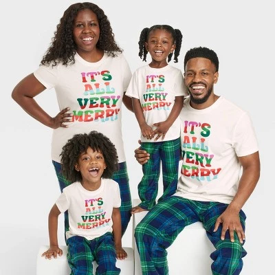 Get ready to head to bed in fun, festive style with this Holiday ‘Very Merry’ Matching Family Pajama T-Shirt from Wondershop™. The short-sleeve tee is crafted from cotton-blend fabric to keep you nice and comfy through the night, and it’s adorned with “It’s All Very Merry” colorful text on a white backdrop for a festive look. Cut in a regular fit with an at-waist length, this short-sleeve tee is easy to pair with a variety of bottoms in your sleepwear closet. The tee is part of the Holiday Very Merry Matching Family Sleep Collection, so you can coordinate with the whole family for photos or a fun holiday movie night.