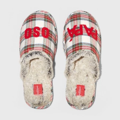Keep your toes warm during the festive season with these “Papa Oso” Plaid Slide Holiday Slippers from Wondershop™. Showcasing an allover plaid pattern with the words ”Papa” and ”Oso” on the upper strap, these slide slippers feature a cushioned footbed construction with faux fur lining to offer your feet plush comfort. Designed with an indoor/outdoor outsole, their slip-on design with a single strap allows for quick and easy wear. You’ll love pairing them with fluffy socks to keep your feet cozy while chilling out at home.