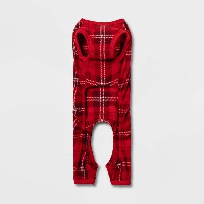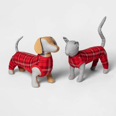 Keep your furry best friend warm and cozy and looking their best by dressing them in these Plaid Dog and Cat Pajamas from Wondershop™. Made from soft fabric with a touch of spandex for stretchy comfort, these dog and cat pajamas feature an allover plaid print for classic style. The pullover style is great for dressing fussier pets, and the PJs are machine washable for easy cleaning.