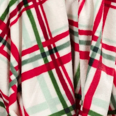 Keep your living room or lounge decor cozy this chilly season with this Plaid Printed Plush Christmas Throw Blanket from Wondershop™. This plush throw blanket made from lightweight material is soft, cozy and comfortable to use. Neatly finished with hemmed edging, it features a red and green plaid print on a cream background for a classic festive-inspired look. Just drape it over the back of your couch, loveseat or armchair for snuggly comfort, and simply machine wash when required.