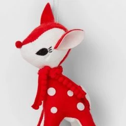 4ct Fabric Retro Reindeer Christmas Tree Ornament Set Red/Green – Wondershop™
