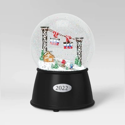 Create a cheerful winter scene with the help of this Ski Hill Snow Globe from Wondershop™. This decorative snow globe features a snowy landscape with skiers with ski lifts, all enclosed in a clear glass dome attached to a weighted black base with “2022” embossed on the front. A sweet accent piece for your coffee table, console table, mantel or desk, this festive snowglobe fills with faux-snow and colorful confetti when shaken to create magical, wintry charm.