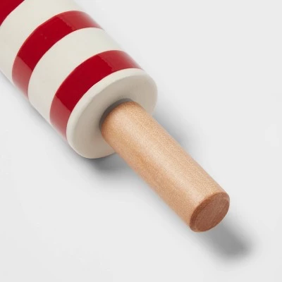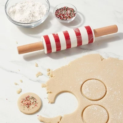 The Stoneware and Wood Striped Mini Rolling Pin from Wondershop™ is a handy kitchen staple you’ll love using to hone your baking skills, and the red stripes make it perfect for the holiday season. The stoneware mini rolling pin is great for crushing cookies and crackers for toppings, or to roll out cookie, bread or pie dough. You’ll love how comfortable the rolling pin is to hold with the wood handles, and how easy it is to hand wash.