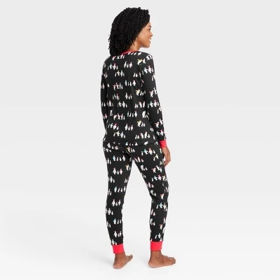 Stay cozy this winter while showing off your festive style with the Holiday Penguins Print Matching Family Pajama Set from Wondershop™. Made from 100% cotton for breathable comfort, this pajama set includes a long-sleeve sleep shirt and pants, both showcasing an allover print of penguins with colorful hats and scarves on a black background for cute wintry vibes. Dress the rest of your family in these matching PJs and get ready for some great photo ops!